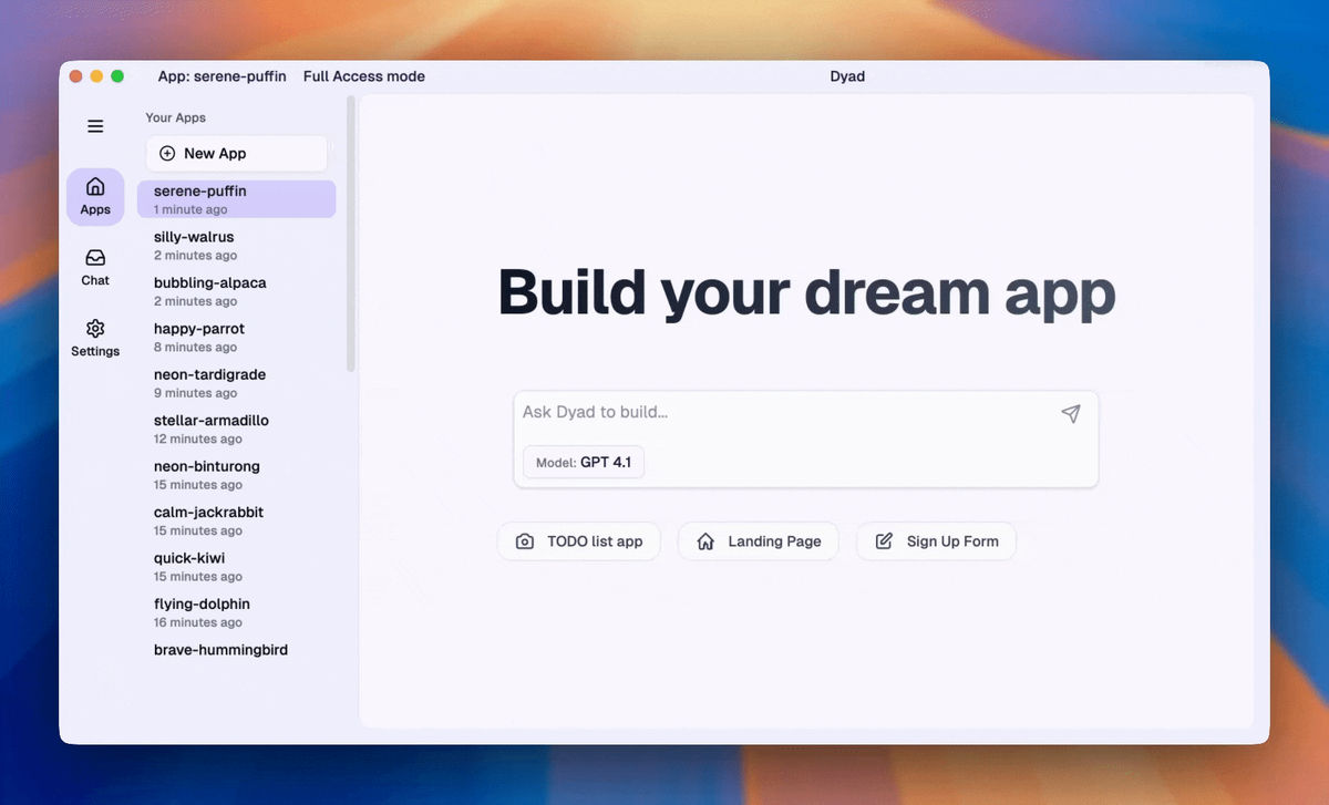 Но недавно я наткнулся на проект, который пытается сломать этот шаблон. Называется Dyad. Идея простая, но для разработчика звучит как музыка: а что, если взять всю магию "создания приложений через чат с ИИ", но засунуть её в локальный, бесплатный и полностью открытый (open-source) инструмент?