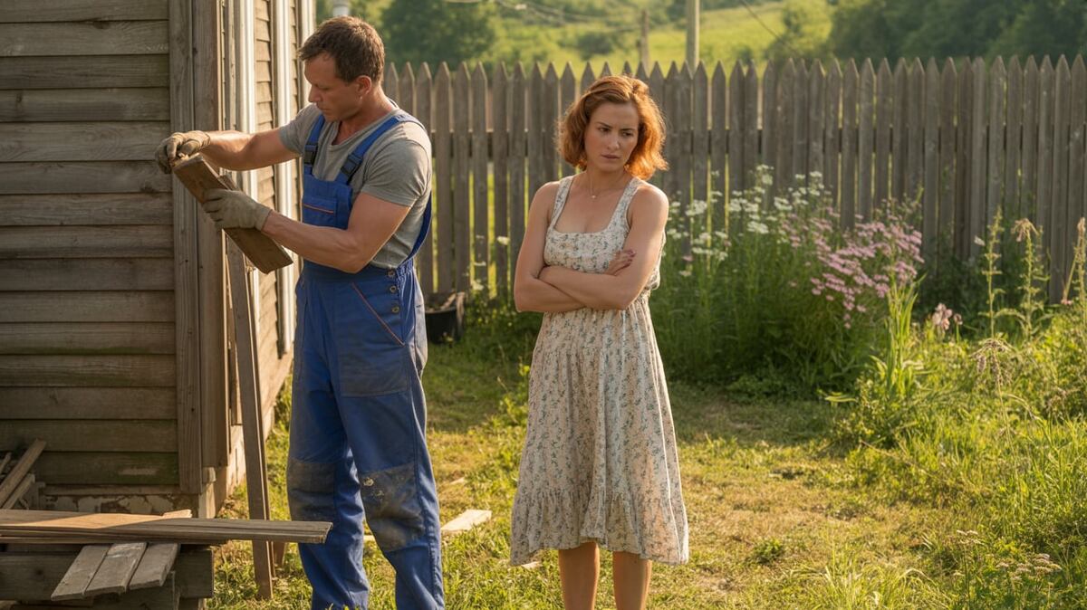 Марина всё больше чувствовала себя не на отдыхе, а на стройке. Вместо обещанных прогулок и пикников она таскала инструменты, подавала гвозди и слушала бесконечные жалобы мужа на соседа.