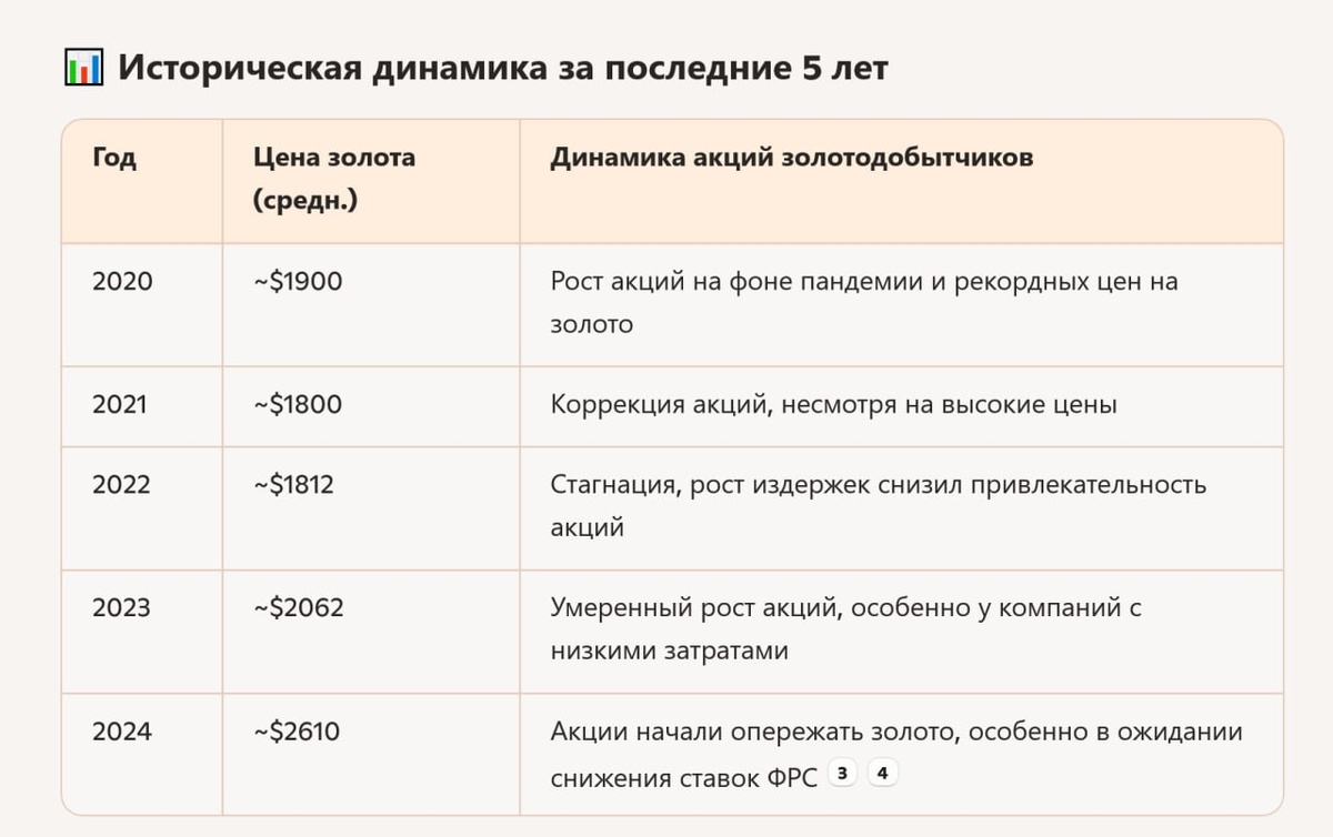 📈 Зависимость акций золотодобывающих компаний от цены золота — это один из самых ярко выраженных примеров корреляции на сырьевом рынке