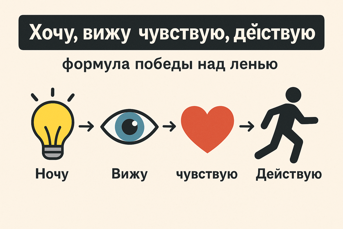 Заходите на мой канал в ТГ https://t.me/+sxeVquLQVToyOWEy Многие ищут сложные техники, чтобы избавиться от лени, но на деле всё куда проще. В основе перемен лежит понятная, проверенная жизнью последовательность: хочу → вижу → чувствую → действую. Если вы научитесь применять эту формулу в любой сфере, — работа, финансы, отношения — результат не заставит себя ждать! Зачастую мы путаем свои настоящие желания с навязанными извне. Поэтому первый и самый важный вопрос — чего я на самом деле хочу?