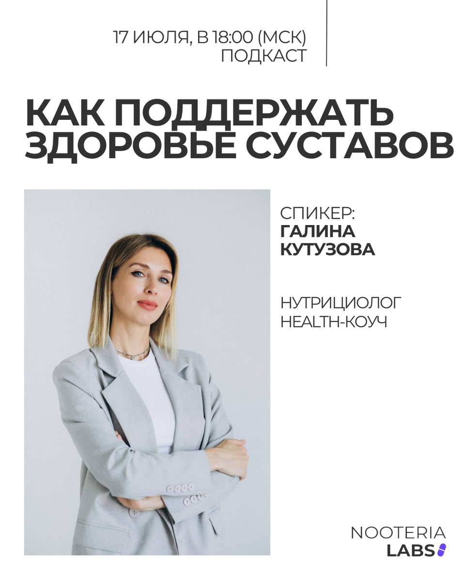Хруст в коленях, скованность по утрам, неприятные щелчки — это «не норма», а повод разобраться. Важную тему о здоровье суставов обсудим на подкасте вместе с нутрициологом, health-коучем Галиной Кутузовой. Вы узнаете: - Почему начинают болеть суставы и что с этим делать на ранней стадии - Как действовать, если уже есть боль, хруст или скованность - Как восстановиться после нагрузок и предотвратить артроз - В чём разница между аптечными хондропротекторами и современными нутрицевтиками - Какие компоненты действительно работают и как правильно их сочетать - Личные рекомендации нутрициолога. 🗓 17 июля, в четверг ⏰ 18:00 (Мск) Задавайте свои вопросы под этим постом 😉 Пишите в комментарии 👇🏻