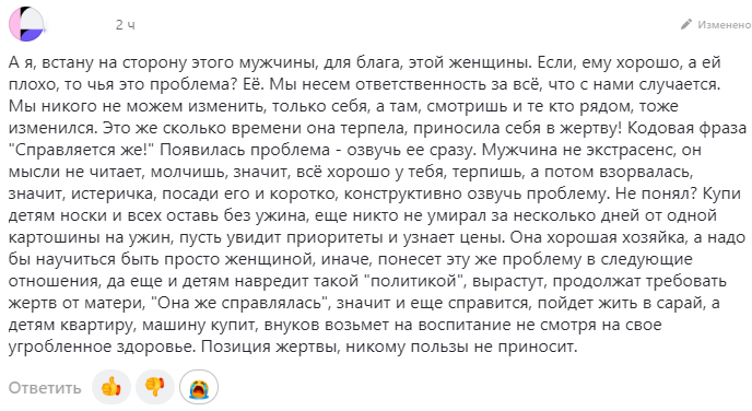 Не смогла пройти мимо этого комментария к своей статье «Финансовый шантаж в браке. А потом мужья удивляются» – решила ответить на него в статье.