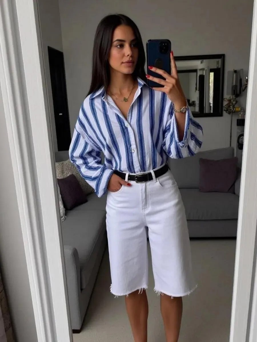 #Лето2025 #Шорты Шорты бермуды Стильные, удлиненные свободные шорты - бермуды. Фасон с завышенной посадкой и карманами. Легко создать множество стильных образов. Отлично подойдут для офиса, дома, отпуска и путешествий. Представлены в трёх цветах - 🔵⚪️⚫️ То что нужно в жаркий летний день ☀️ ✍️ Артикул: 401845707 + 401844322 + 401847676 👌 Размеры: от 42 до 48 💵 Цена всего от 1 749 ₽ _______ Как тебе❓ ❤️ / 💔 Топовый look с Wildberries 💶💵💴
