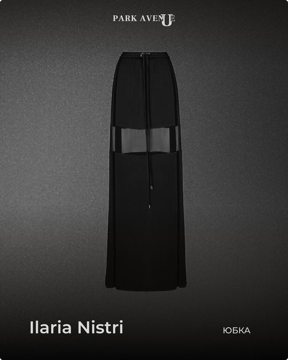 Юбка макси с поясом-кулисой, полупрозрачной шёлковой вставкой и изящным разрезом объединяет сдержанность и эффектность в равной мере. Соберите монохромный образ — чёрная блуза из мягкого трикотажа и лодочки в тон подчеркнут чистоту силуэта и позволят ткани говорить за вас.