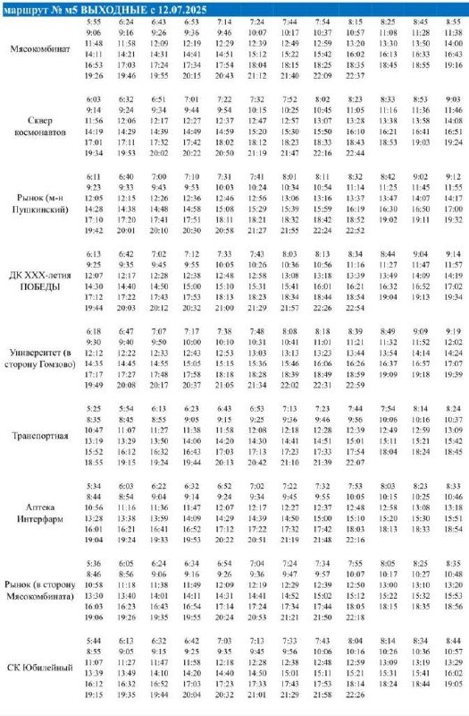 С 12 июля в Йошкар-Оле изменится график движения троллейбуса М5 по выходным дням. Как рассказали в ГУП РМЭ «Троллейбусный транспорт», от остановки «Мясокомбинат» первый троллейбус отъезжает в 05:55, от остановки «Сквер космонавтов» в 06:03, от рынка в 06:11. От остановки «ДК XXX-летия Победы» троллейбус отправляется в 06:13, от университета в сторону микрорайона «Гомзово» в 06:18, от остановки на улице Транспортная в 05:25, от «Аптеки Интерфарм» в 05:34, от рынка в сторону Мясокомбината в 05:36 и от остановки «СК Юбилейный» в 05:44. Напомним, что актуальное расписание движения троллейбусов можно посмотреть на сайте www.троллейбус12.рф. Также общественный транспорт можно отследить в приложениях Транспорт, Яндекс.Карты, 2ГИС, Йошкар-Ола транспорт и здесь. 📸 Изображение: @mptt_12