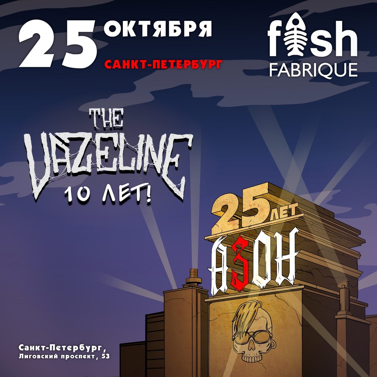 25 октября, Санкт-Петербург! Два мощных юбилея: группе Азон исполняется 25 лет, а The Vazeline — 10