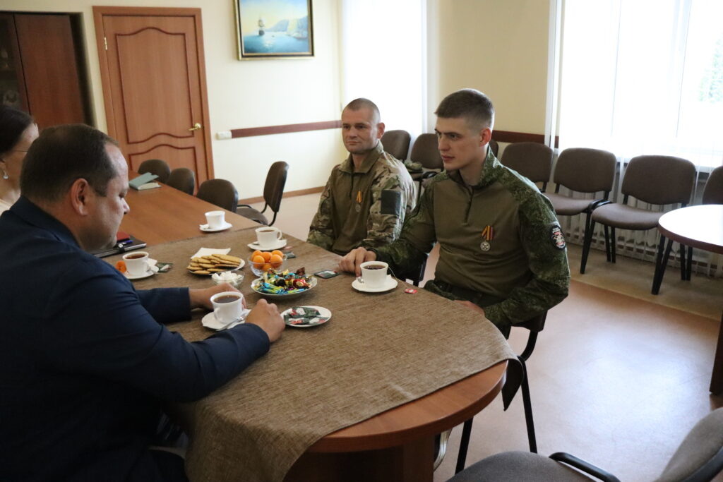 В минувшую пятницу, 28 июня, глава муниципалитета Константин Ткачев встретился с нашими земляками, воюющими в зоне проведения специальной военной операции, находящимися сейчас в отпуске. Парни уже не первый год на передовой, получили большой опыт как в штурмовых действиях, так и в операциях по удержанию опорных пунктов, но не смотря на это о своих боевых заслугах говорили довольно скромно. Речь больше шла о том, как организован быт бойцов, каков распорядок их службы, сложностях и проблемах, которые мы, как земляки, находящиеся в тылу, можем решить своими силами. – Мы сейчас обменяется контактами, не стесняйтесь, обращайтесь, особенно если нужно помочь вашим семьям, ведь вы защищаете нас там, а мы помогаем вам здесь, – дал понять свою позицию глава муниципалитета Константин Ткачев. По словам Алексея и Александра, вся та гуманитарная помощь, что отправляется с конвоями из нашего района, доходит до них регулярно и в полном объеме. Особенно рады парни на передовой, когда к ним приходят пис