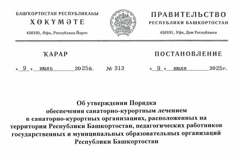 Педагоги государственных и муниципальных образовательных учреждений Республики Башкортостан будут получать двухнедельное санаторно-курортное лечение в здравницах региона по указу Главы РБ Радия Хабирова. Документ доступен по ссылке ниже