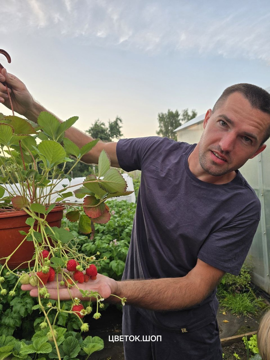 Клубника "Гирлянда"! Супер урожай без перерыва! В этом году у меня клубника растёт не только на грядке, но и в кашпо Посадила легендарный ампельный сорт Гирлянда, созданный нашим Российским селекционером и Вы только посмотрие какая красота! Не просто урожай, а живое украшение! Эта красавица усыпана сладкими ягодами непрерывно, как гирлянда огней Дети каждый день пострянно с радостью срывают ягодки, она же висит, всегда чистая, только успевают подходить Гирлянда способна расти не только на улице, она легко может украшать балкон или террасу Ведь это специальный засухоустойчивый сорт для подвесных кашпо! Клубника Гирлянда в подвесном кашпо и многие другие сорта клубники в моём интернет-магазине Цветок.шоп: https://cvetok.shop/klubnika