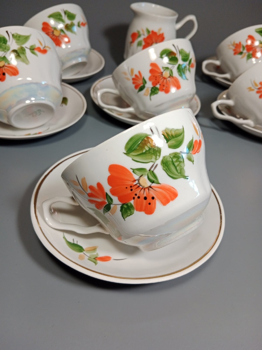 Из недавних находок, хочу представить вам чайные пары и молочник производство Барановка "Мальва", ручная роспись. Очень яркий и летний рисунок. Обожаю когда, каждый мазок виден. Представлю вам ещё "Мальву" в другом цвете, попался только молочник в другом цвете, два года назад . И конечно продолжим тему "Мальвы" представлю ещё. Чайные пары Пролетарий "Мальва", ручная роспись . Рисунок "Мальва", но каждая пара на разной форме. И конечно, как обойти знаменитые чайные пары-гиганты Барановка "Мальва" на 500мл. Хочу заметить, что блюдца размером примерно, как пирожковые тарелки. Эти пары на стандартном крытье "цвете", но конечно есть, как исключение из правил (на розовом, зелёном и на красном и в других цветах). Но они попадаются достаточно редко, пока в руках не держала 😄 Спасибо вам за внимание !✨ Оставляйте вашу красоту в комментариях на тему "Мальвы", будем рады полюбоваться !)))💖💥💥💥 Ссылка на телеграмм канал в закрепленном комментарии .