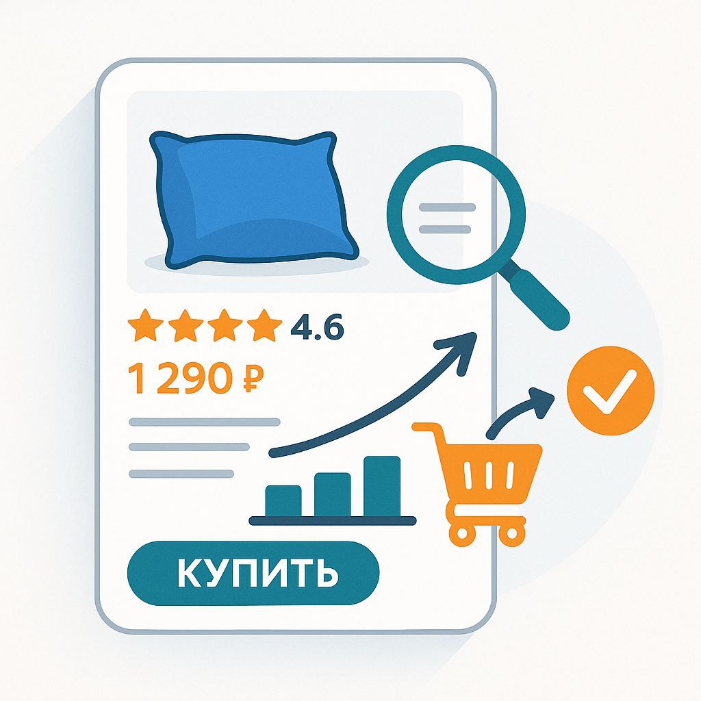 Снизили цену, включили рекламу, а заказов всё нет. Почему? Потому что карточка товара на маркетплейсе — это не просто витрина, а полноценная воронка продаж. Если карточка не «продаёт» с первого взгляда, покупатель уйдёт к конкуренту, даже если у вас самая низкая цена. --- 1. Что такое карточка как воронка: структура, которая приводит к выкупу Карточка товара на Ozon и Wildberries — это не просто фото и описание. Это пошаговая воронка: 1. Первое фото и заголовок — отвечают за CTR (переходы из поиска). 2. Описание, фото и характеристики — за добавление в корзину. 3. Отзывы, рейтинг, доставка и цена — за финальное решение о покупке. Если хотя бы один этап слабый — воронка «течёт». Пример слабой воронки: – 5000 показов → 2% CTR → 100 кликов – из 100 кликов только 3 корзины (3% конверсии вместо 5–7%) – из 3 корзин — 1 заказ. Пример сильной воронки: – 5000 показов → 4% CTR → 200 кликов – из 200 кликов 14 корзин (7% конверсии); – из 14 корзин — 7 заказов. 💡 В два раза выше CTR и конверсии →