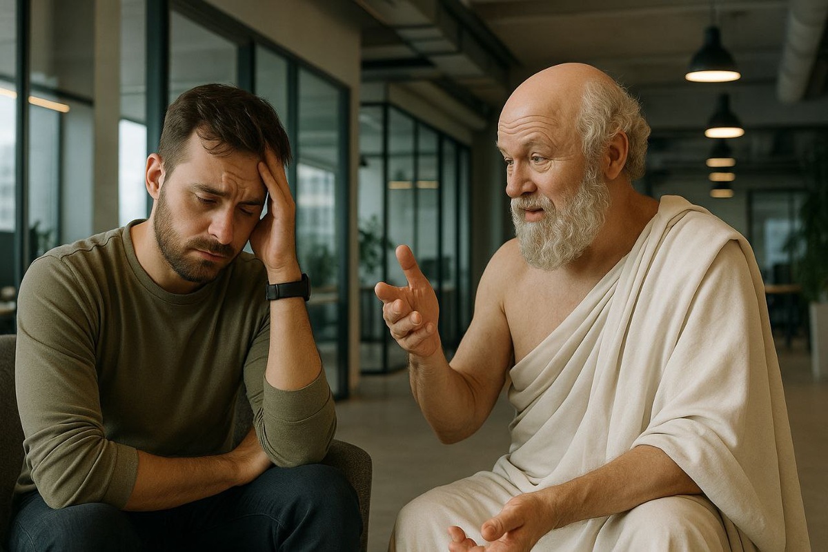 💬 Диалог о выгорании, которое стало модным словом - Сократ, мне кажется, я выгорел... - Ты уверен, Друг? Или просто устал, как муха на окне в такую жару? В 70-х этот термин применяли к надзирателям тюрем и врачам хосписов. Тем, кто годами смотрел на боль, страх и агрессию - и не мог не обуглиться изнутри. А теперь? - «Выгорел» - говорит офисный работник, уставший от Zoom'ов. - «Выгорел» - говорит фрилансер после третьего подряд проекта. - «Выгорел» - пишет блогер, просто потому что его сторис не собрали охваты. Слово осталось, а глубина исчезла. А всё почему? Не умеем отдыхать по-настоящему. 10 дней отпуска - 12 на восстановление, 2 на отдых. Остался в минусе - так себе отдых, согласись? 😊 28 дней подряд в году (полный цикл восстановления) - это не каприз, а необходимость, чтобы не свихнуться. Нет смысла. Если работа - просто «таскать камни» из пункта А в пункт Б, душа рвётся. Без внятного «зачем» - всё становится бессмысленным. Режим вечного двигателя. Раньше выгорали после