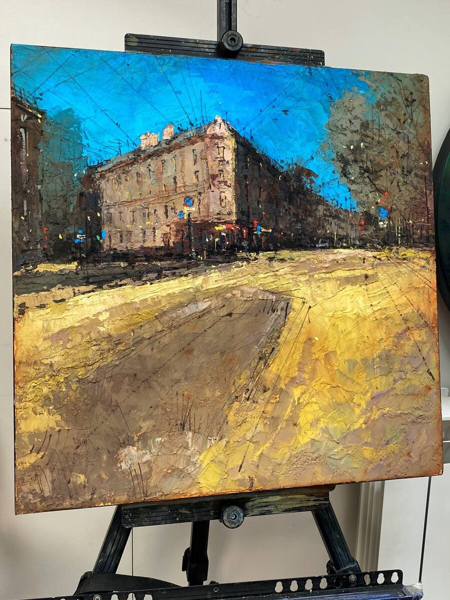 Совмещаю то как пишу акварелью в масляной живописи и технике… вообщем - микс всего ) А кто запрещает? Ул. Маршала Рыбалко, Москва, 2025 50х50, холст, масло. #живопись #пейзаж #москва
