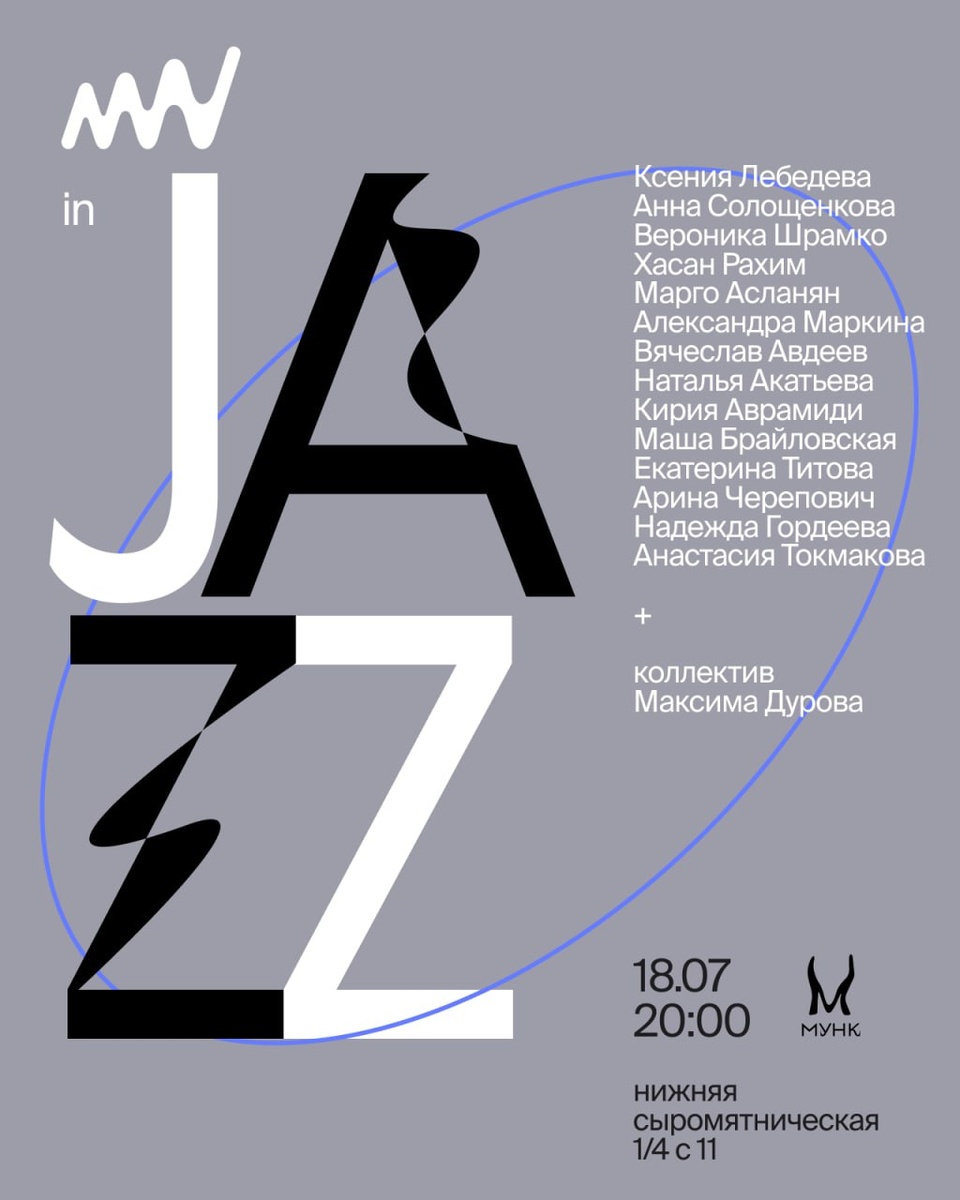 MW IN JAZZ — голос нового джаза. 18 июля, пятница 20:00 бар «Мунк» (нижняя сыромятническая, 1/4, стр. 11) изысканность. новаторство. самобытность. MW IN JAZZ 2025 — седьмой фестиваль от musical wave, где резиденты и приглашённые артисты выходят на одну сцену. живой ансамбль, авторские аранжировки, джаз в его современном звучании. музыкальное ядро вечера — коллектив Максима Дурова, трубача и композитора, выпускника РАМ им. Гнесиных и стажёра Dave Brubeck Institute (США). его подход — диалог традиций и эксперимента, узнаваемый по проектам с Кругловым, Кроллом и Оркестром им. Лундстрема. в программе — авторские пьесы и смелые джазовые интерпретации. на сцене — голоса джазовых и соул-артистов: Ксения Лебедева, Вероника Шрамко, Наталья Акатьева, Анна Солощенкова, Хасан Рахим и другие. за инструментами: Максим Дуров — труба Константин Бойцов — саксофон Сергей Сокулер — бас Иван Чага — барабаны Виктор Смирнов — клавиши много голосов. один язык — джаз. приходите слушать. 🎹 1000 ₽ > к