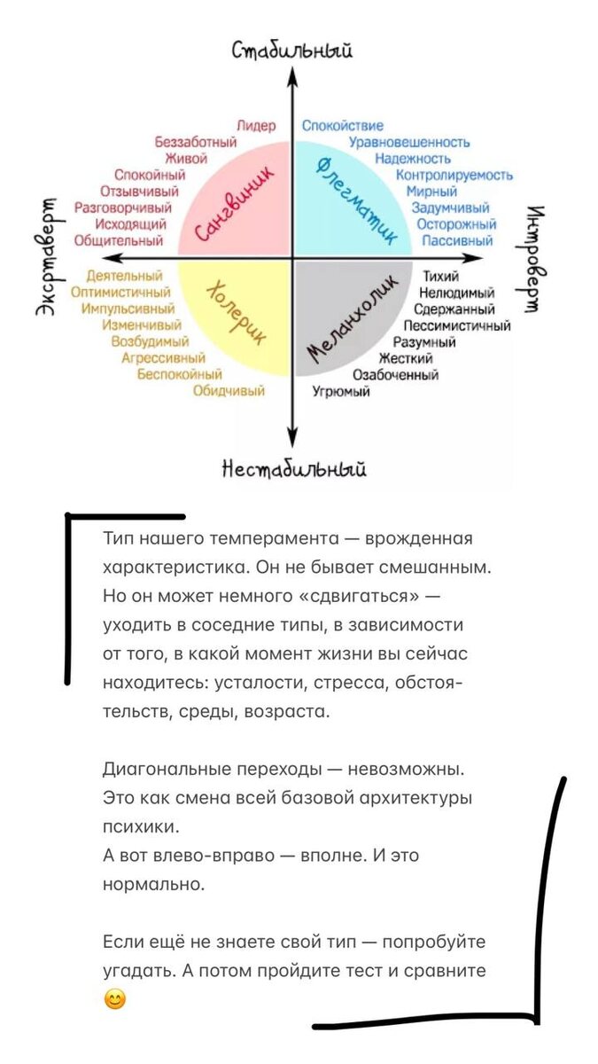 А кто ты по темпераменту ? (ссылка на тест в комментариях ) А если бы могли выбрать — стали бы другим темпераментом или всё-таки остались собой, но с пониманием своих особенностей?
