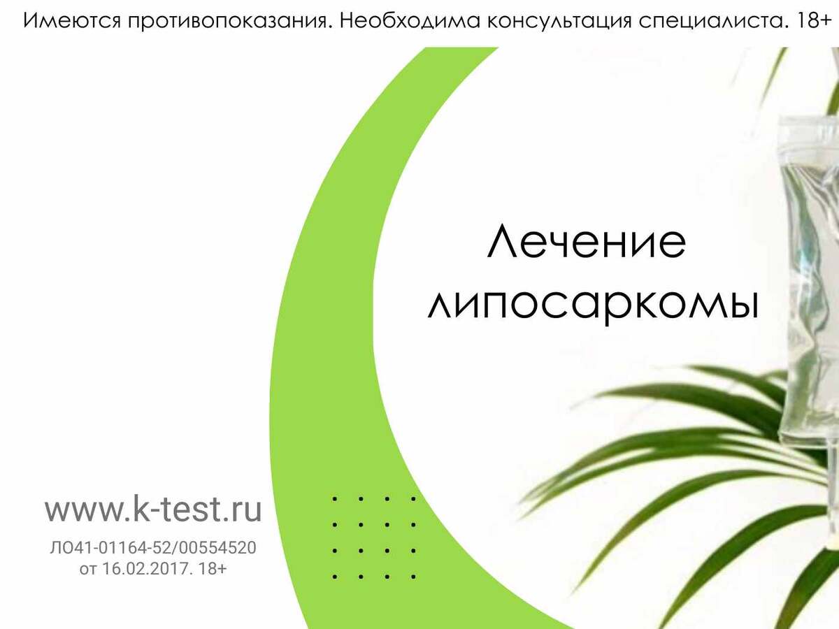 В клинике «К-тест» уже более 30 лет применяется метод усиления противоопухолевого лечения высокой температурой — общая элетромагнитная гипертермия. Метод не новый и хорошо известен и практикуемый в разных странах. Применение высокой температуры в сочетании с химиотерапией, и если есть показания с таргетной и иммунотерапией, может значительно повысить эффективность лечения липосаркомы.
