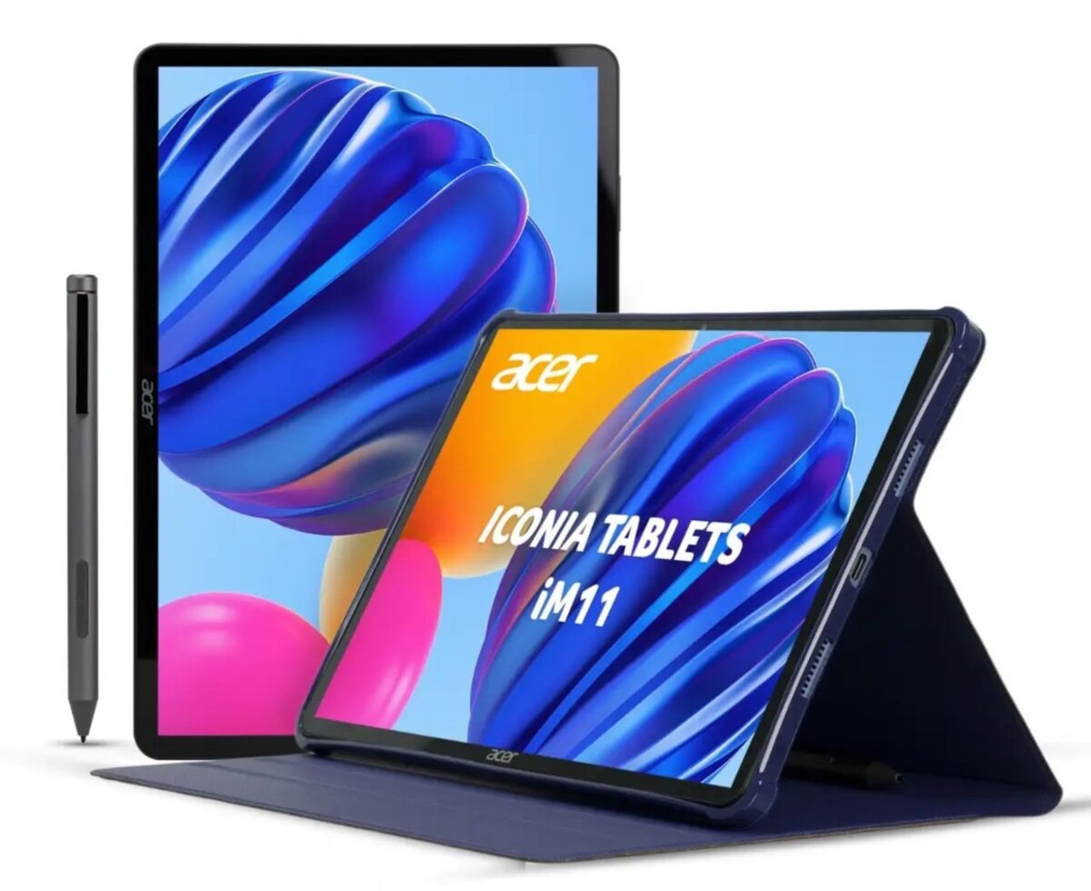 Компания Acer запустила планшет Iconia Tab iM11 с 11,45-дюймовым IPS-экраном разрешением 2,2K (2200×1440 пикселей) и поддержкой 4G VoLTE. Устройство стоимостью от $290 комплектуется активным стилусом, Bluetooth-клавиатурой с тачпадом и умным чехлом. Image: Acer Планшет работает на процессоре MediaTek Helio G99 с графикой Mali-G57 MC2. Предлагаются версии с 6/128 ГБ или 8/256 ГБ памяти (постоянная память – UFS 2.2). Экран с яркостью 450 нит дополнен четырьмя динамиками с технологией PureVoice для шумоподавления. Основная 16-Мп камера оснащена автофокусом и вспышкой, фронтальная 8-Мп модуль фиксирует изображение. Аккумулятор ёмкостью 7400 мА·ч обеспечивает до 8 часов работы при воспроизведении видео и поддерживает быструю зарядку 18 Вт. Image: Acer Габариты устройства — 261,7×117,5×8 мм при весе 550 граммов. Предустановлена ОС Android 14. Модель доступна в синем цвете через официальные каналы Acer, позиционируясь как конкурент Samsung Galaxy Tab S9 FE в бюджетном сегменте для образования