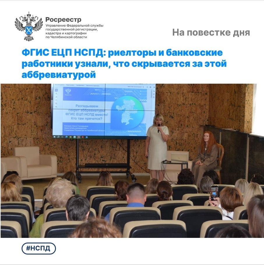 10 июля 2025 года заместитель руководителя Управления Росреестра по Челябинской области Ольга Юрченко выступила перед профессиональным сообществом и рассказала о работе сервисов Единой цифровой платформы «Национальная система пространственных данных» (nspd.gov.ru). Управление Росреестра по Челябинской области уделяет особое внимание взаимодействию с профессиональными участниками сферы недвижимости. Регулярно проводятся рабочие встречи и обучающие семинары, в ходе которых разбираются актуальные вопросы и демонстрируются сервисы портала НСПД. Вчера очередное такое мероприятие состоялось с участием риелторского и банковского сообществ на площадке Челябинского отделения Сбербанка России. В ходе своего выступления заместитель руководителя Управления Росреестра Ольга Юрченко предложила участникам совместно разобраться, что скрывает за собой аббревиатура ФГИС ЕЦП НСПД (Федеральная государственная информационная система «Единая цифровая платформа «Национальная система пространственных данных»)