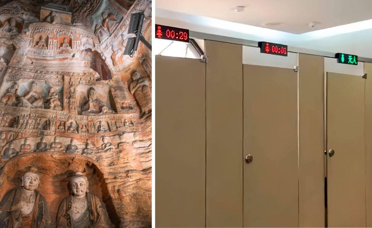 🇨🇳 В туалетах в пещерных гротах Юньган установили кабинки с таймерами