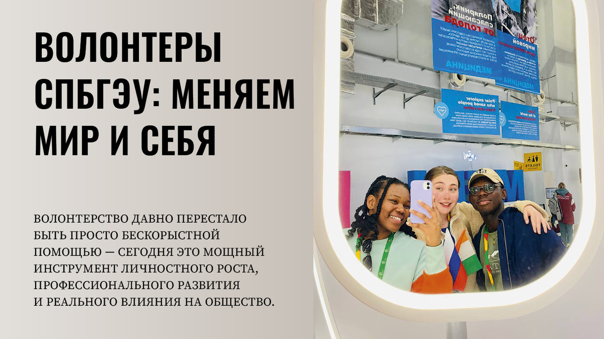 Волонтерство давно перестало быть просто бескорыстной помощью — сегодня это мощный инструмент личностного роста, профессионального развития и реального влияния на общество. Студенты Санкт-Петербургского государственного экономического университета активно участвуют в добровольческих инициативах, доказывая, что даже в студенческие годы можно менять мир к лучшему. О том, как волонтерство открывает новые возможности и помогает реализовать себя, рассказывают активисты нашего вуза. Мария Никифорова, активистка Студенческого совета гуманитарного факультета, начала свой путь в волонтерстве четыре года назад. «Друзья пригласили меня помочь приюту для животных, и мне очень понравилась эта идея. Позже, в рамках университетской программы, меня распределили в команду, которая создавала грантовый проект для объединения социальных инициатив вузов Петербурга. Так я погрузилась в работу Студенческого совета», — вспоминает Мария. Среди реализованных проектов, в которых участвовала студентка, — создание