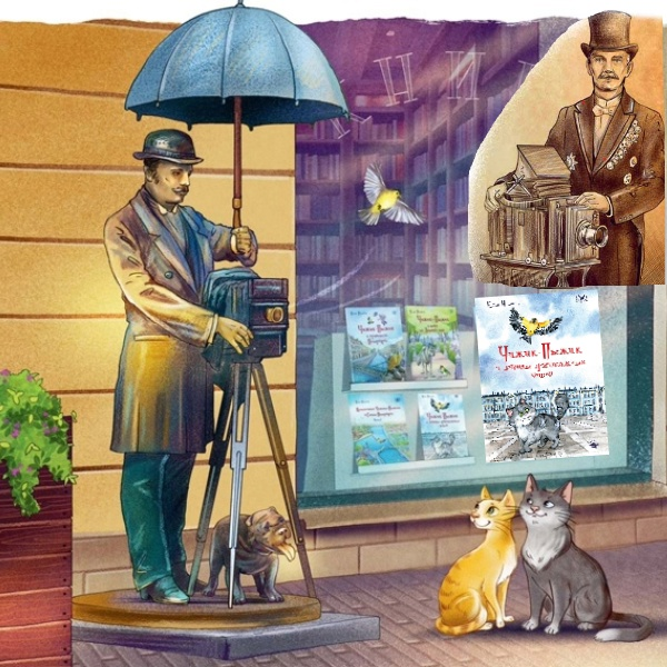 Маршрут для летних прогулок от Юлии Ивановой и Чижика-Пыжика в честь ДНЯ ФОТОГРАФА. «Надо сказать, что на Малой Садовой улице, около дома номер три, есть ещё одна интересная скульптура — памятник петербургскому фотографу: высокий человек со старинным фотоаппаратом на треноге готовится к съёмке, прикрывая зонтиком объектив от солнечных лучей. К нему-то и направились коты, чтобы сделать праздничную фотографию.