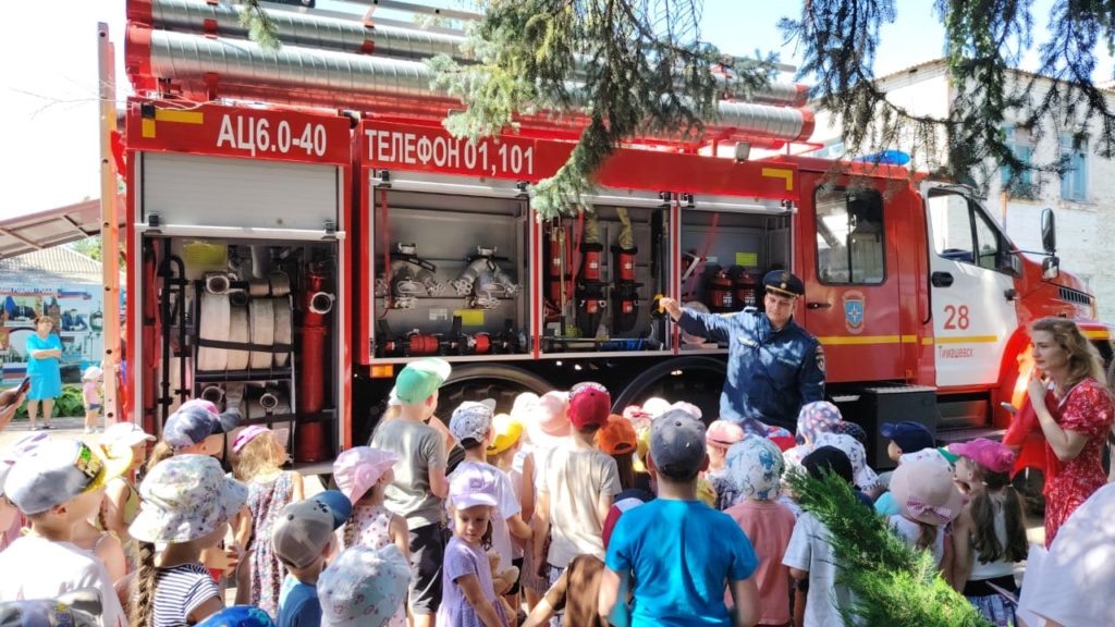 Звуки пожарной сирены, доносившиеся из детского сада №1 города Тимашевска, сегодня привлекли внимание горожан. Что происходит? А это просто пожарные попрощались с малышами, с которыми провели полдня, рассказывая о своей работе и даже показывая ее. Так ярко завершилась неделя пожарной безопасности в этом детском саду. Всю минувшую неделю воспитатели проводили с ребятами тематические беседы, игры, моделировали проблемные ситуации, оформляли выставки творческих работ. А сегодня, сотрудники пожарно-спасательной части №28 ФГКУ «13 ОФПС по Краснодарскому краю» рассказали детям о важности профессии пожарного, о способах тушения огня, напомнили о необходимости соблюдения правил безопасности. Дети рассмотрели спецмашину, посидели внутри и вместе с пожарным потушили условный пожар. А в конце встречи подарили гостям рисунки и аппликации, сделали памятные фотографии, которые станут напоминанием о яркой и познавательной неделе, посвященной пожарной безопасности. Анастасия Ветрова.