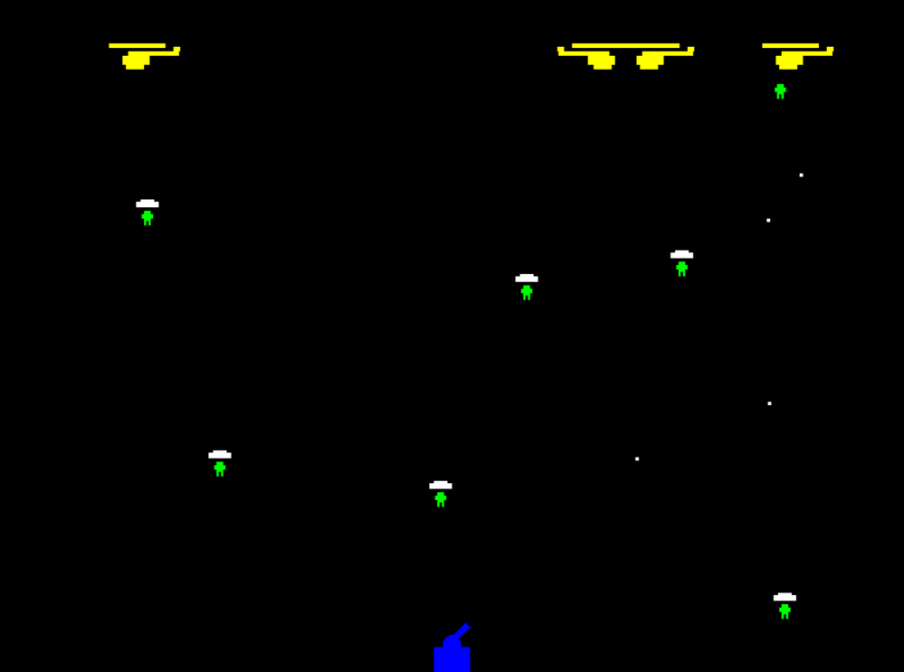 В оригинальной игре парашютист не сразу раскрывает парашют, а сначала пролетает в свободном падении какое-то случайное время. Без парашюта он летит быстро, а с парашютом медленно. Это не позволяет игроку заранее взять упреждение, потому что он не знает, в какой момент раскроется парашют. Так получается интереснее.