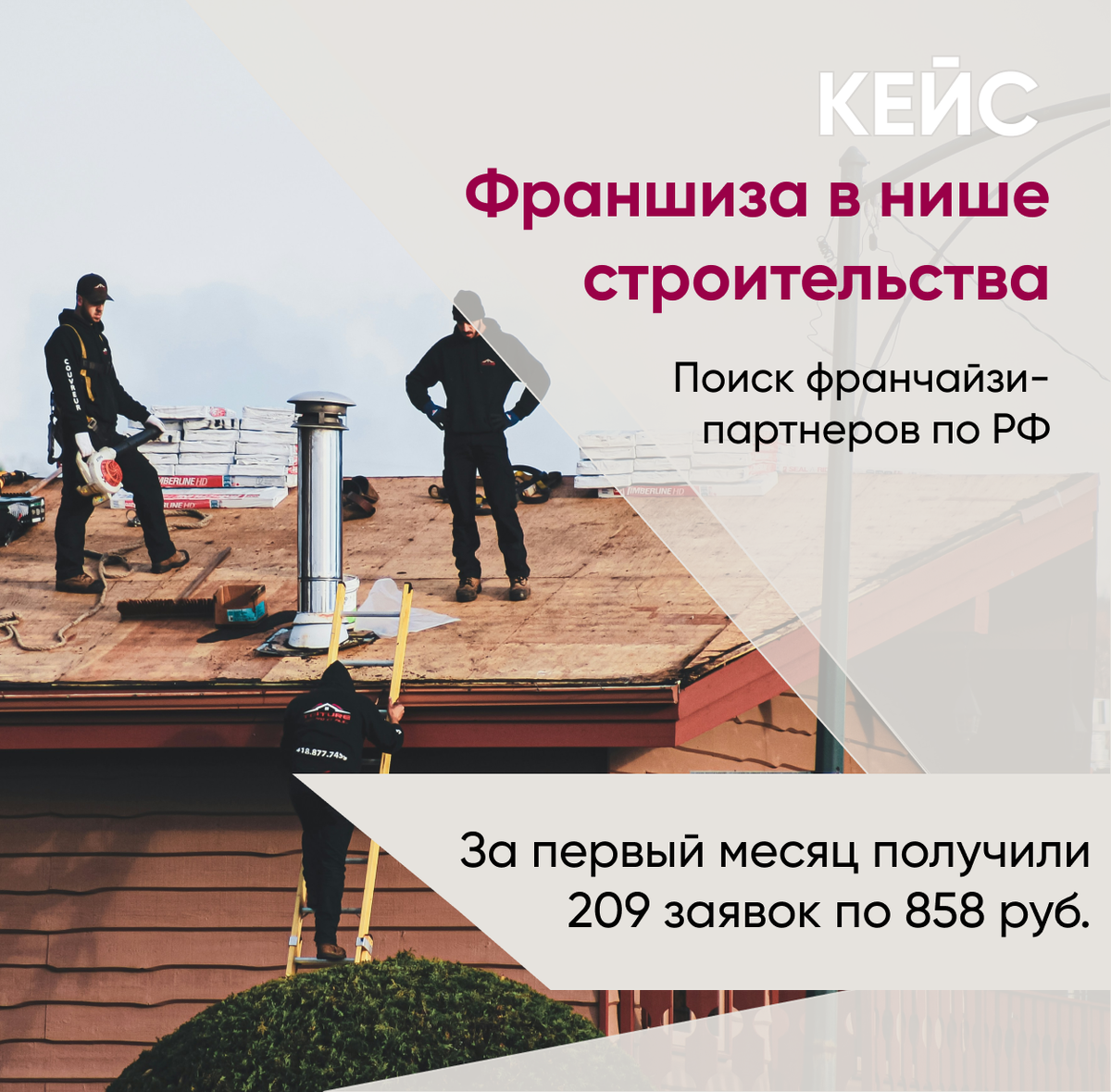 Кейс франшизы в нише строительства. 209 заявок по 858 ₽ из Яндекс Директ.