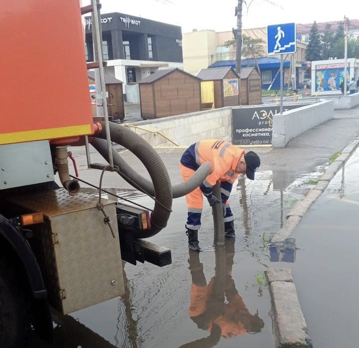 В Омске после обильных дождей с улиц города начали активнее откачивать воду