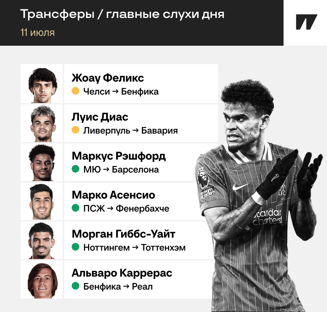 Феликс на днях признался: хотел бы вернуться в «Бенфику» и снова поработать с Бруну Лаже. В 2019-м он принес лиссабонцам 127,5 млн евро, но дальше его стоимость каждый год падала. «Челси» в 2024-м взял его у «Атлетико» за 52 млн, «Бенфика», скорее всего, отдаст еще меньше.