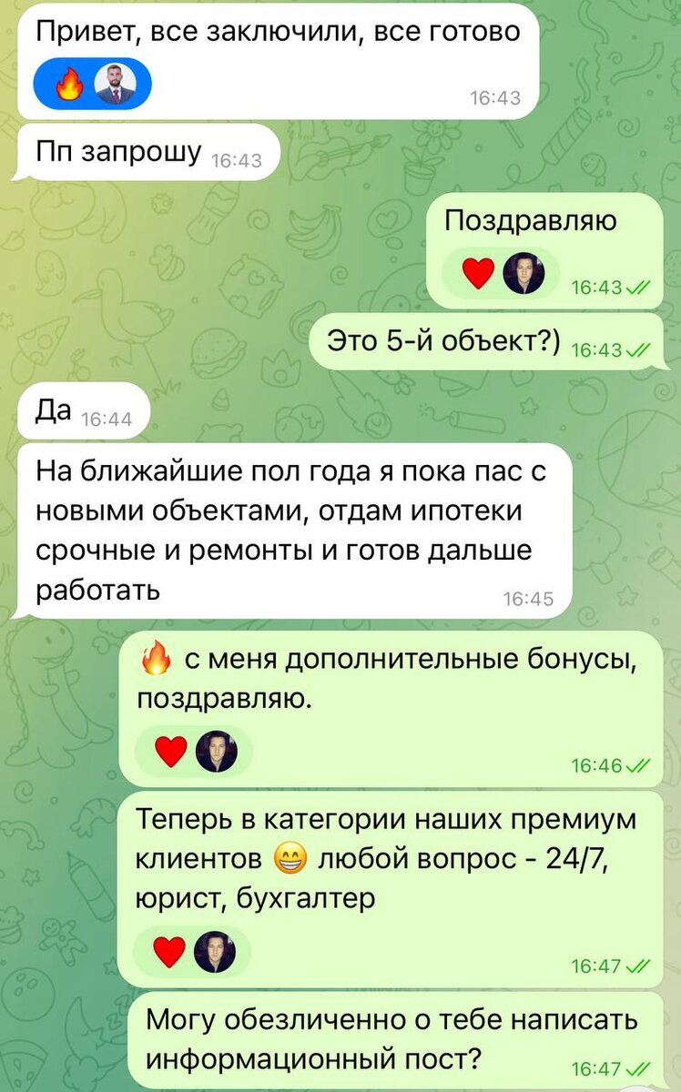 5 объектов за 5 лет С разрешения нашего клиента пишу пост. 5 лет назад в 2020 году у нас была первая встреча в зуме. Инвестор не из Москвы, занимается бизнесом и хотел купить объект в Москве, чтобы сохранить деньги и использовать кредитное плечо. Так вышло, что исходя из бюджета и задачи - мы смогли сразу купить пару объектов - квартиру в Мосоковской области и апартаменты в Москве с разным сроком сдачи, чтобы не было много трат на ремонт. И использовали ипотеки 0,01% Далее в 2024 он вернулся за следующим объектом и мы также смогли разделить бюджет на 2 объекта - использовали вовремя льготную ипотеку на покупку студии и взяли еще одни апартаменты в стройке И сейчас он оценил предложение которое ему ушло одним из первых о стоимости метра в новых апартаментах - и смогли одобрить 5-ю ипотеку Считаю это нашей победой, классный результат. В деньгах это около 47 млн, 5 ипотек. ИП. - 9 студий Все сделки проходили удаленно. Инвестор ни разу не приезжал в Москву, не смотрел ремонт, не в