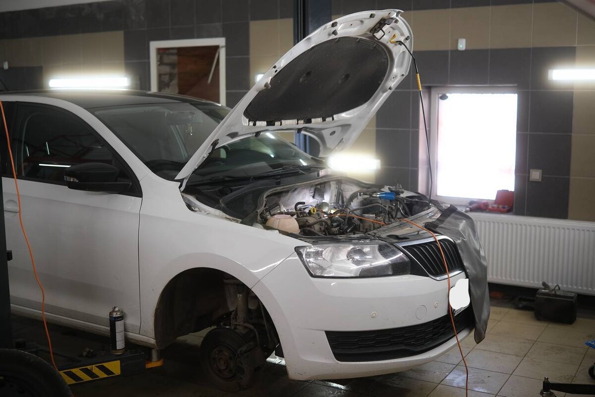 Skoda Rapid - замена корпуса термостата, водяного насоса и помпового ремня и сайлентблоков передних рычагов