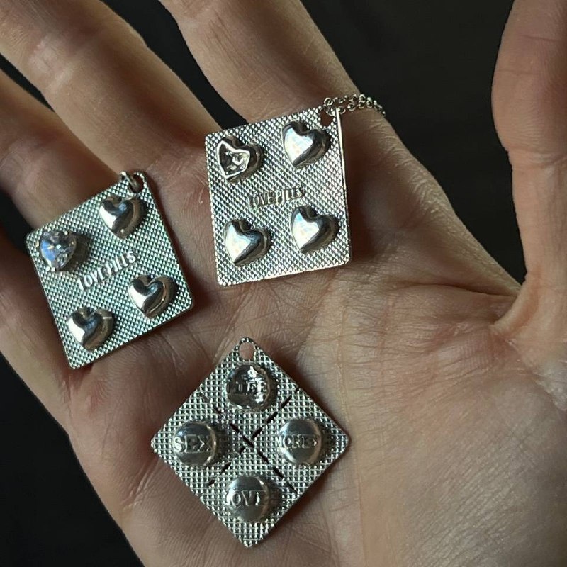 Бренд PEREL дропнул кулоны в виде БЛИСТЕРОВ ОТ ТАБЛЕТОК. Варианта два: таблетки любви с сердечками и секси-упаковка с круглыми пилюлями. Выполнено из серебра и стоит 10.000 рублей. Деды-модники за 25, налетайте