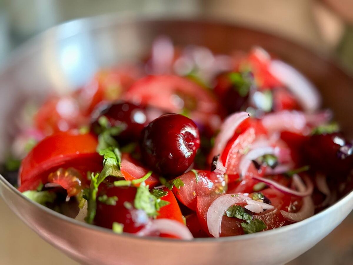 π π π π π π π ΠΠΊΡΡΠ½ΡΠΉ ΡΠ°Π»Π°Ρ ΠΈΠ· ΠΏΠΎΠΌΠΈΠ΄ΠΎΡ, Π»ΡΠΊΠ° ΠΈ Π²ΠΈΡΠ½ΠΈ, ΠΏΡΠΈΠΏΡΠ°Π²Π»Π΅Π½Π½ΡΠΉ Π°ΡΠΎΠΌΠ°ΡΠ½ΡΠΌ Π±Π°Π·ΠΈΠ»ΠΈΠΊΠΎΠΌ