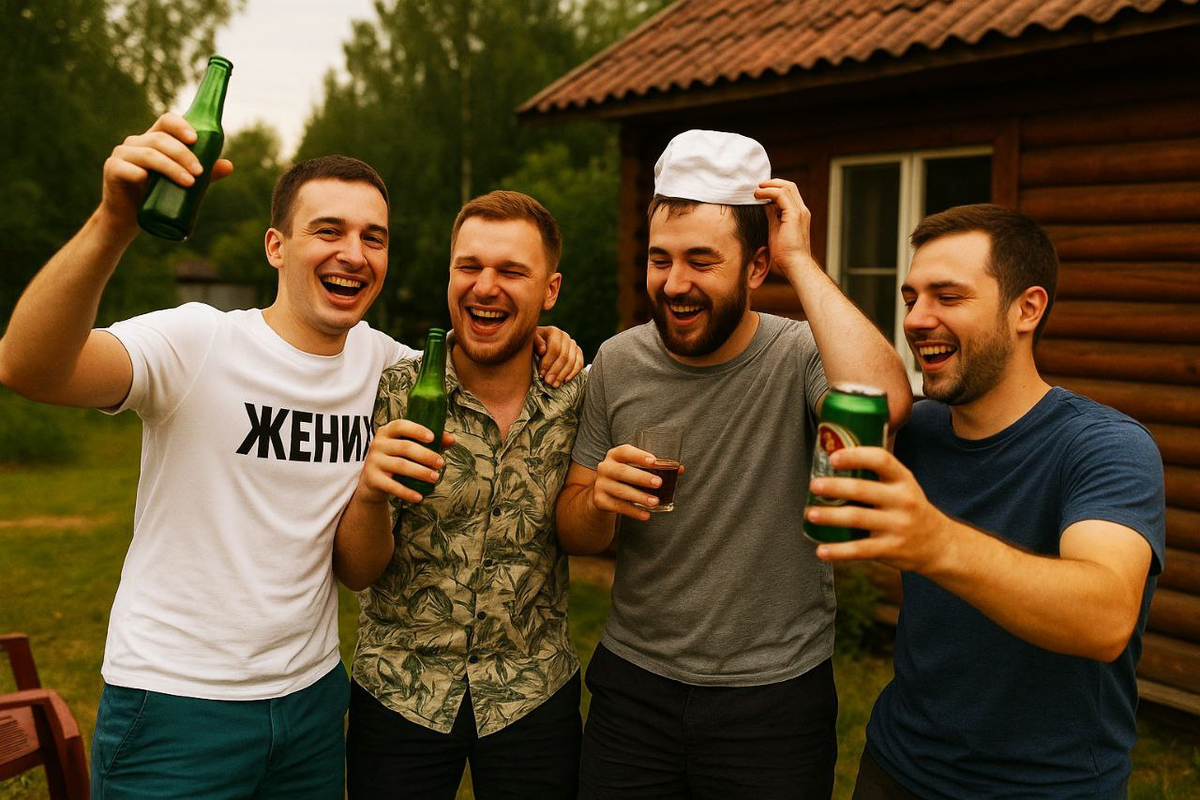 — Если ты хоть рюмку выпьешь — она порвёт тебя, как Тузик грелку? — перебил Вовка, ещё один друг, вечно ржущий и вечно с подбитым глазом. — Мы всё знаем. Поэтому… мальчишник будет без алкоголя.