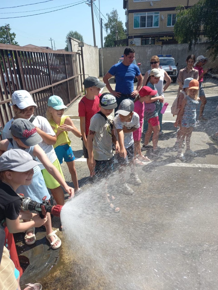 4-й отряд сходил на экскурсию в пожарную часть. Дети всегда в восторге от знакомства с техникой МЧС! Они с удовольствием изучили машину и средства пожаротушения. И ещё раз услышали, что с огнём шутить нельзя🚨