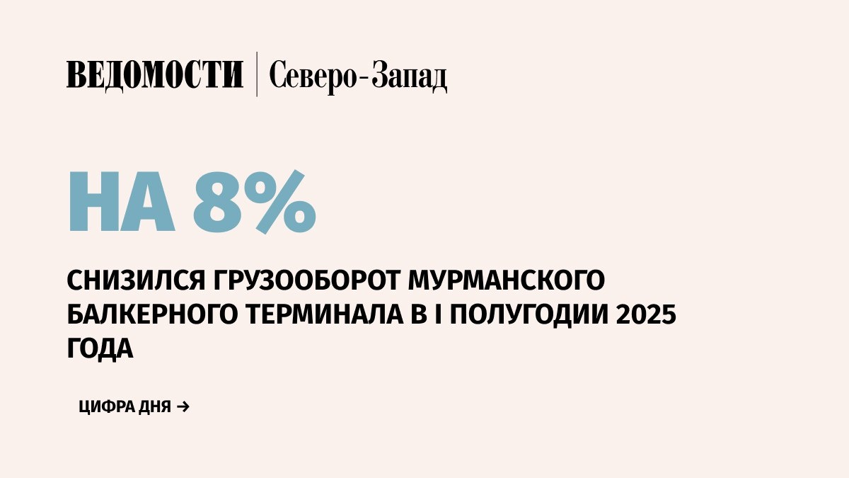 Грузооборот Мурманского балкерного терминала (МБТ) за I полугодие 2025 г. составил 1,6 млн т грузов. Это на 8% меньше по сравнению с аналогичным периодом прошлого года, сообщила пресс-служба терминала в своем Telegram-канале. Наибольшая доля в структуре грузов принадлежит минеральным удобрениям – 51%. Также в грузооборот вошли железорудный окатыш (9% доля), железорудный концентрат (5%), щебень (5%) и другие виды грузов (2%). 💭«Текущая динамика отражает адаптацию к изменениям и перераспределению грузопотока в логистических схемах и рыночном спросе. В ближайшие месяцы мы ожидаем стабилизации объемов за счет роста экспорта минеральных удобрений», — отметил исполнительный директор МБТ Евгений Гуляев. 📰 Подпишитесь на «Ведомости Северо-Запад»