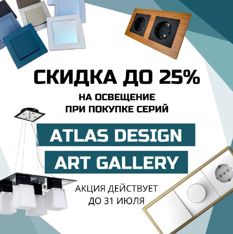 🔥 СКИДКА ДО 25% на освещение при покупке серий ATLAS DESIGN и ART GALLERY