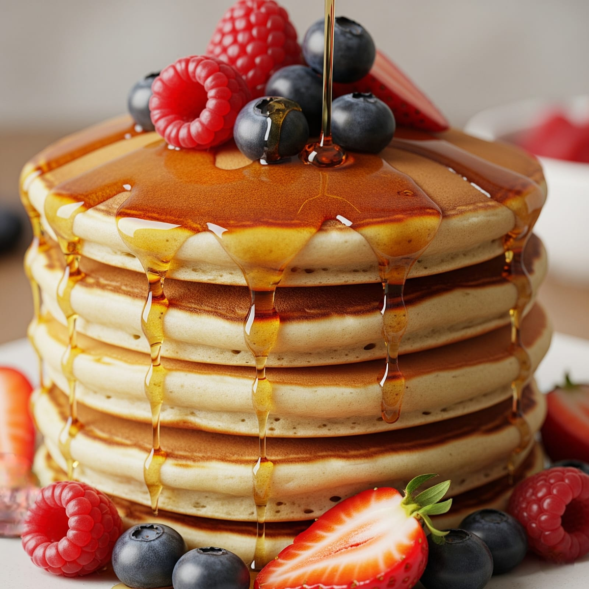 Сухие ингредиенты: В большой миске смешайте муку, сахар, разрыхлитель, соду и соль. Хорошо перемешайте венчиком, чтобы не было комочков. Жидкие ингредиенты: В отдельной миске слегка взбейте яйцо. Добавьте молоко, растопленное сливочное масло (или растительное) и ванильный экстракт (если используете). Перемешайте до однородности. Соединение: Влейте жидкие ингредиенты в сухие. Перемешайте лопаткой или венчиком до тех пор, пока мука не увлажнится. Не перемешивайте слишком долго, комочки - это нормально, главное, чтобы не было сухой муки. Чрезмерное перемешивание сделает панкейки жесткими. Выпекание: Разогрейте сковороду (лучше с антипригарным покрытием) на среднем огне. Слегка смажьте ее маслом (можно использовать бумажное полотенце, смоченное в масле, чтобы убрать излишки). Выливайте тесто на сковороду порциями (примерно 1/4 стакана на один панкейк). Распределяйте тесто ложкой, чтобы получились круглые панкейки. Жарьте панкейки по 2-3 минуты с каждой стороны, пока на поверхности не появя