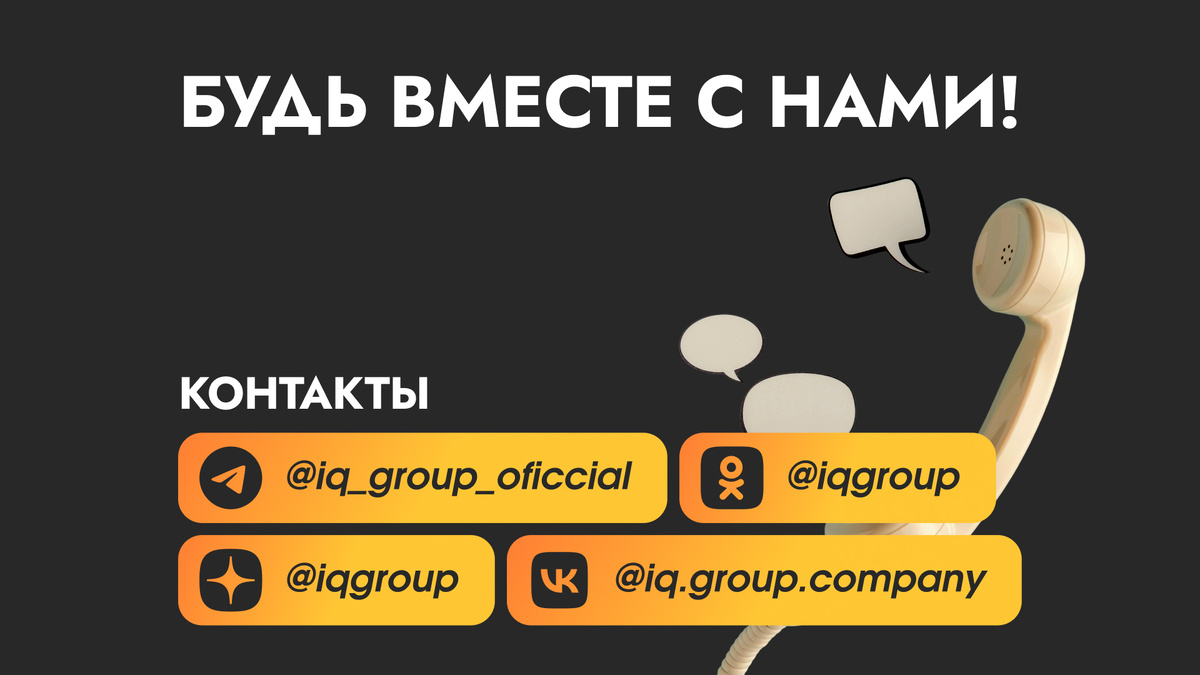 📱Подписывайтесь на официальные страницы ГК " IQ GROUP", чтобы своевременно получать рекомендации от наших специалистов и актуальные предложения: