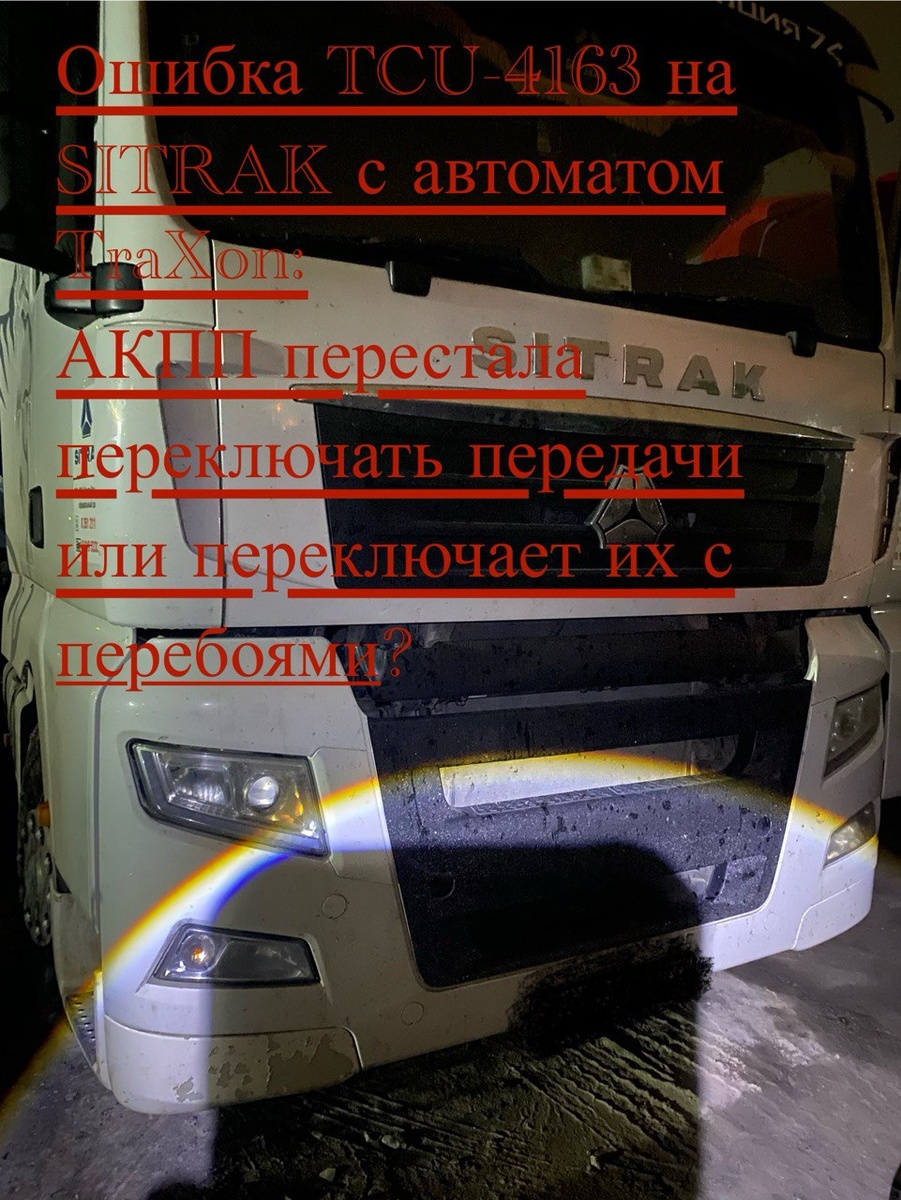 Недавно был выезд по интересной неисправности на тягаче SITRAK, оборудованном автоматической коробкой передач ZF Traxon. Водитель жаловался на странное поведение коробки: передачи не переключаются или «бьют» через раз. На панели — ошибка TCU-4163