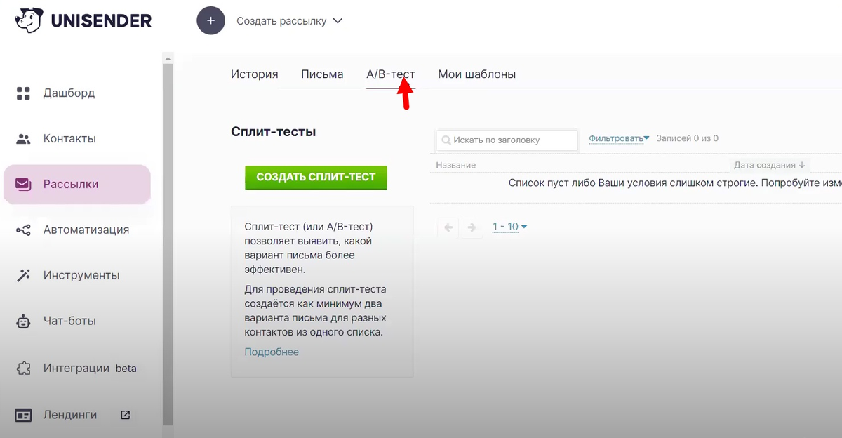 5. Выберите список рассылки: укажите, каким контактам вы хотите отправить письма.