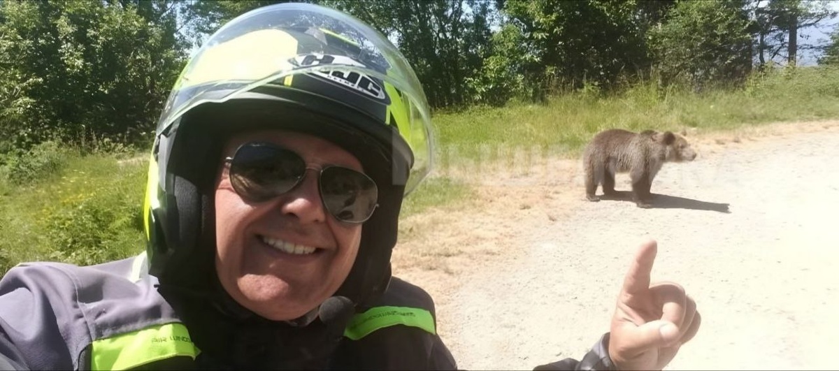 Вот она, вершина эволюции: итальянский байкер решил покормить румынского медведя