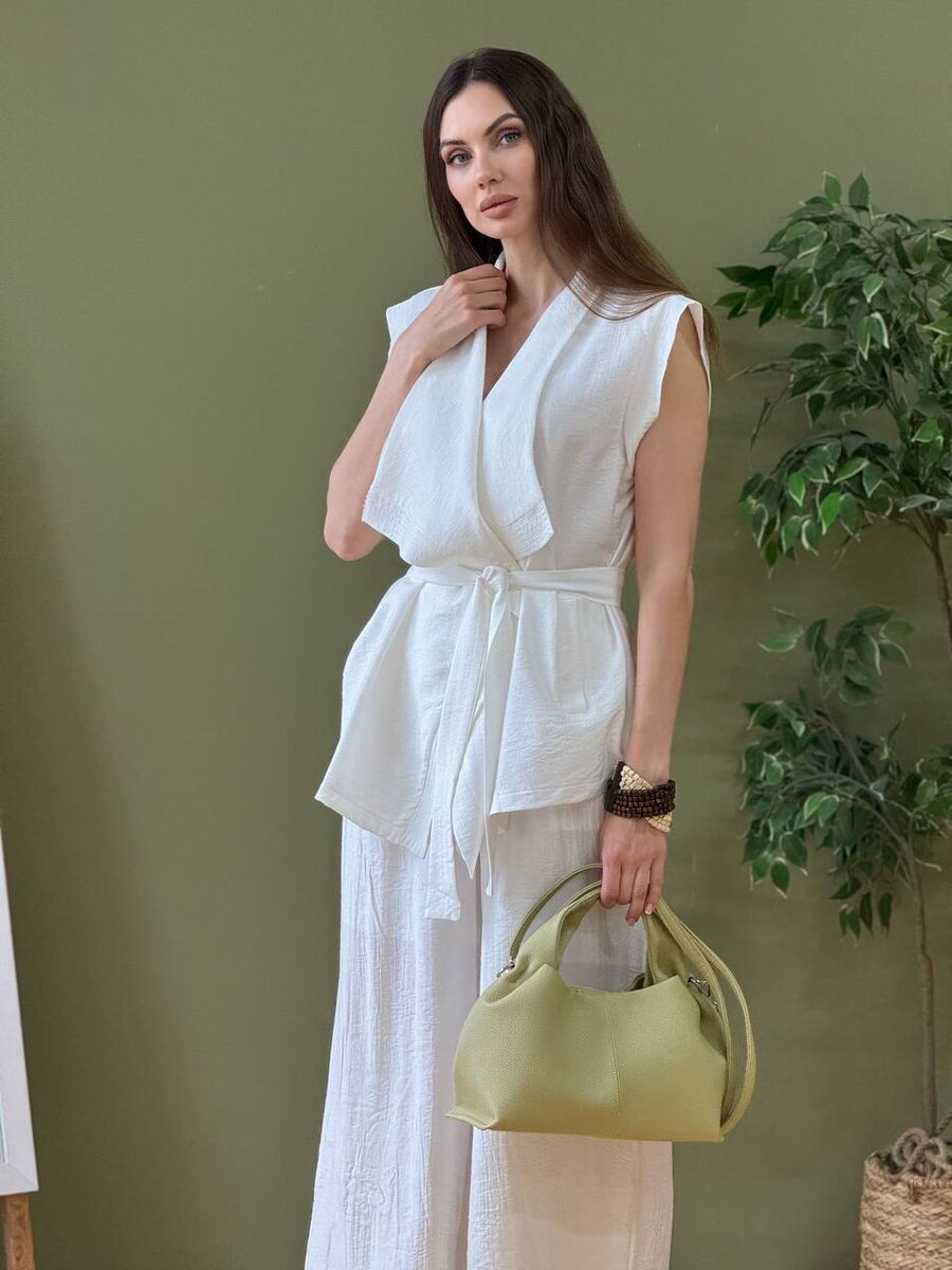 Ассиметричный жилет и струящиеся брюки — расслабленный и универсальный образ, который будет одинаково уместен как для отдыха на побережье, так и для будней в городе. В наличии со скидкой 50% за 6430₽💔