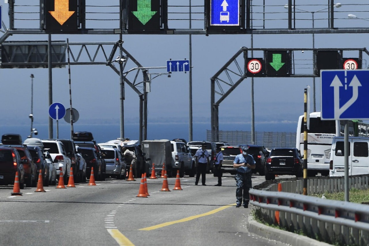 Более тысячи машин скопилось в очереди перед Крымским мостом