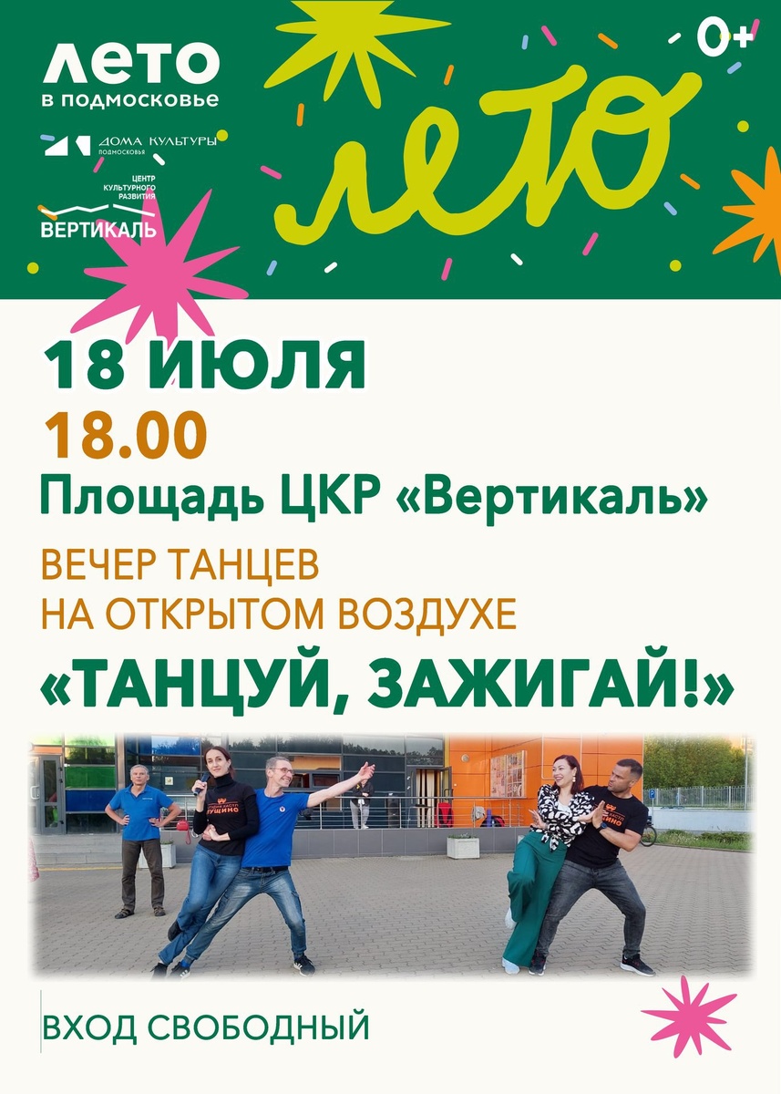 ✨ В Пущино вечер танцев «Танцуй, зажигай!» 😉 Танцевальная разминка — что может быть лучше после трудовой недели! Ждём на нашей площади всех, кто желает отдохнуть и провести это вечер в хорошей компании! 🚫 Возраст: 3+ 📆 18.07.2025 🕒 18:00 🏢 ЦРК "Вертикаль" г. Пущино 📍 г.о. Серпухов, г. Пущино, проспект Науки, 7 💰 Вход свободный❗️ #webСерпухов ⭐Разместить публикацию ⭐Поддержать канал голосом ✅ Мероприятия Серпухов https://dzen.ru/id/66f01c6eb4c6fe60c9ca1608 http://vk.com/serpukhov_events http://dzen.ru/serpukhov_events