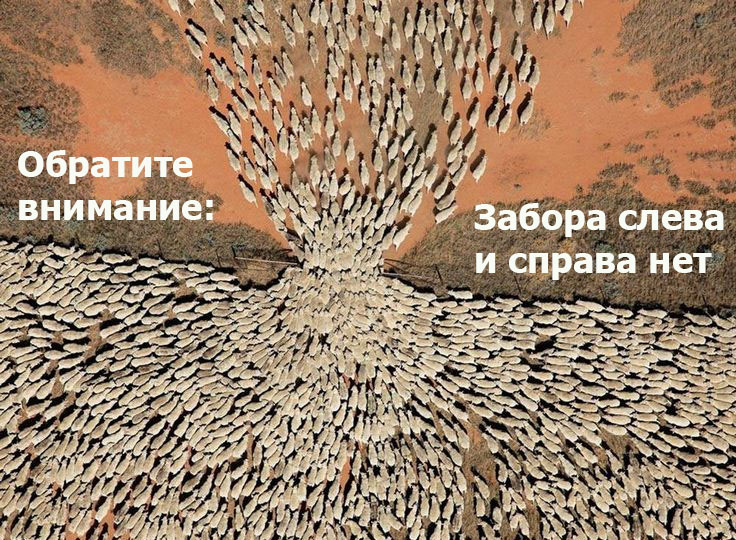 Овечки не задумываются над тем, куда ведет их козел. Они не ставят под сомнение его авторитет, даже если впереди маячит явная опасность, например обрыв или люди с характерными инструментами наготове.