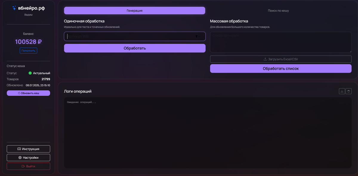 На практике продавцы сталкиваются с большими расходами на услуги копирайтеров или вынуждены тратить десятки часов на ручную подготовку текстов. Как вбнейро.рф решает проблему Сервис вбне