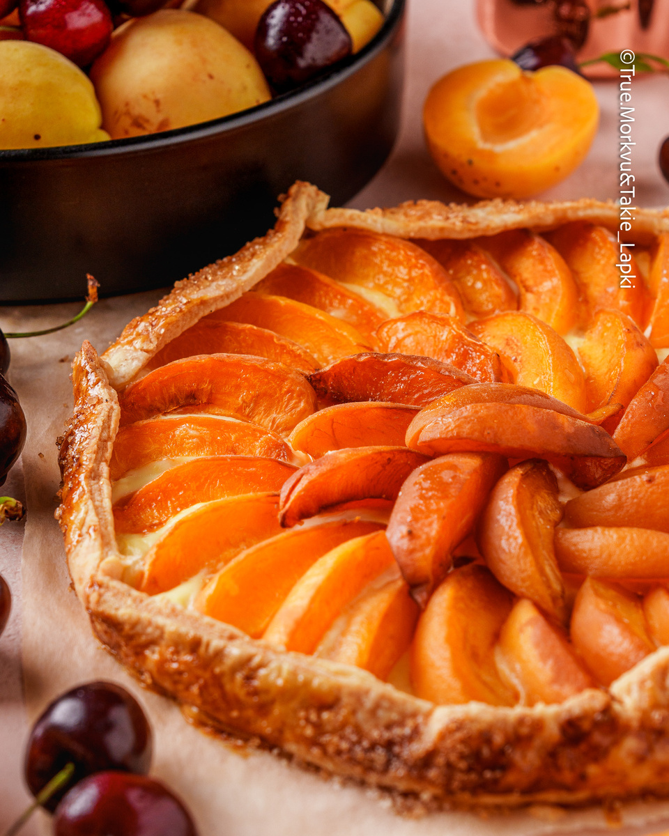 Как-то я пропустил начало сезона этих сливовидных. Да и лето, честно говоря, пролетает мимо меня. Оно где-то там, за окном, а я тут 🤔 За сим я задумал сделать ватруху-переростка. По-быстренькому сходил в магазин, где веселый восточный дядька, приговаривая «абрикосы-мед», отвесил мне по паре кило всего многообразия фруктов, что у него были. И я, аки ослик, обвешанный пакетами, шатаясь двинулся обратно домой: месить, резать и запекать 😁 🤓 Если на вашу душу абрикосов не хватило, то, как говорит мой карапуз, «не переживай»: возьмите крымские персики. На крайняк клубнику, черешню, сливу или инжир, будет вкусно. К чаю - самое то. Тесто для галеты 18-20 см 👇 Начинка 1️⃣ Смешайте муку, соль, сахар и сливочное масло до состояния крупной крошки. 2️⃣ Влейте уксус и воду, быстро перемешайте, скатайте тесто в шар, заверните в пленку и уберите в холодильник на 2 часа. 3️⃣ Для начинки смешайте творожный сыр, яйцо и цедру. 4️⃣ Раскатайте тесто кругом 20-24 см. В центр, отступая от края, выложите