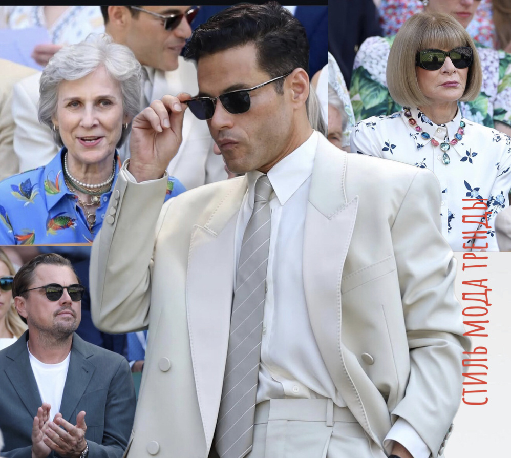 И знаменитости слетаются. Сегодняшние визитеры теннисных баталий. Леонардо Ди Каприо. Рами Малек выглядит очень харизматично. Он, как и большинство мужчин сегодня, в летних костюмах от Ralph Lauren, бренд тратит каждый год около 10 миллионов долларов минимум на спонсорские Уимблдону. Коллекция Polo Ralph Lauren Wimbledon продается ежегодно в избранных розничных магазинах, включая магазины Ralph Lauren, а также онлайн на сайте компании. Гости часто получают комплекты бесплатно. А это из Парижа срочно прилетевшая в Лондон Анна Винтур. Ну как же Королевская ложа и без нее? Кстати, о королевских особах. Президент турнира –принцесса Уэльская. Но ее заменяют две уже знакомые вам дамы. Герцогиня Глостерская в ярком летнем, президент дочерней компании Уимблдона, и один из руководителей турнира Джеванс . Граф Сноудон, сын принцессы Маргарет . Бенедикт Камбербэтч с женой Софи Хантер. В Лондоне жарко. Все звезды смотрят полуфинальный матч мужского одиночного разряда Уимблдона между